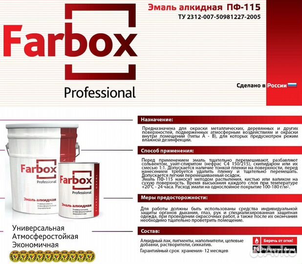 Эмаль пф-115 ту Farbox, универсальная алкидная