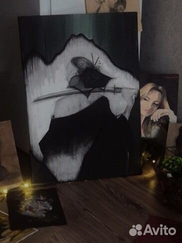 Картина акрилом+уголь