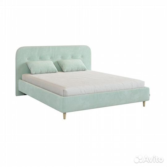 Кровать "Лео" 1,6*2,0 м - мята (велюр) /галька (велюр)