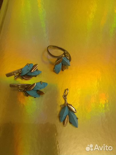 Ювелирный набор серебро вставки золото и бирюза