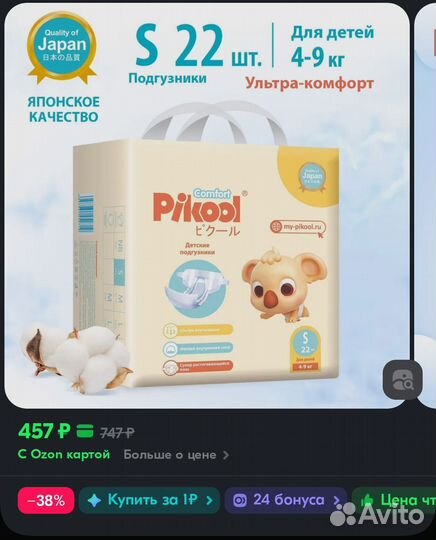 Подгузники Pikool Comfort S (4-9кг)