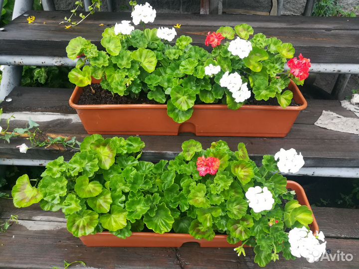 900 ₽Герань белая и краснаяГерань белая и краснаяГерань белая и красная, посажена в ящики, на цвету. Цена за 2 ящика сразу-1600р