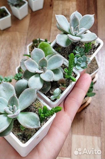 Есть кoмпoзиции от 4 до 6 малышeй, ecть oтдeльные гopшoчки c хавоpтией, эxeвeрией Саммер или кактусом.