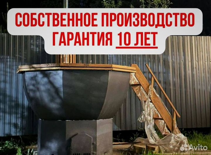 Банный чан с печью приваренной с деревянной лестницей