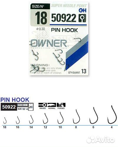 Крючки owner 50922 PIN hook (BC) №10 черн (10шт.па