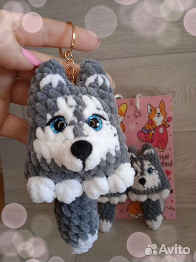 Вязаный хаски брелок