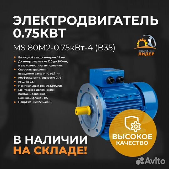 Асинхронный трехфазный двигатель 0.75 кВт (MS 80M2