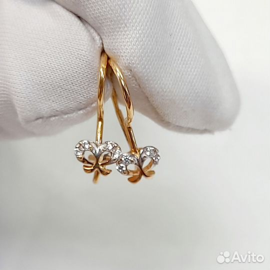 Золотые серьги с фианитом