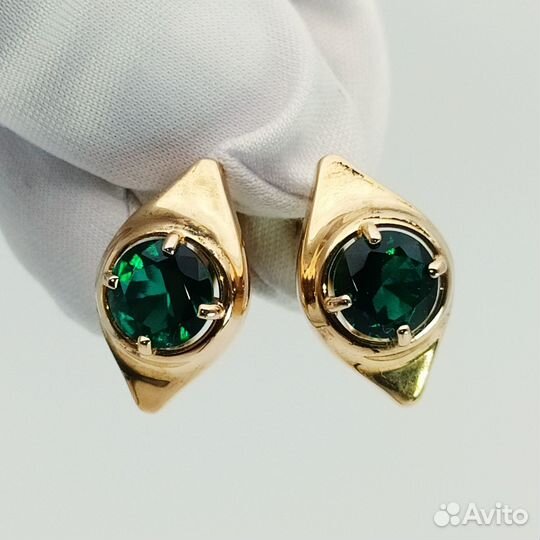 Серьги с синтетическим камнем Золото