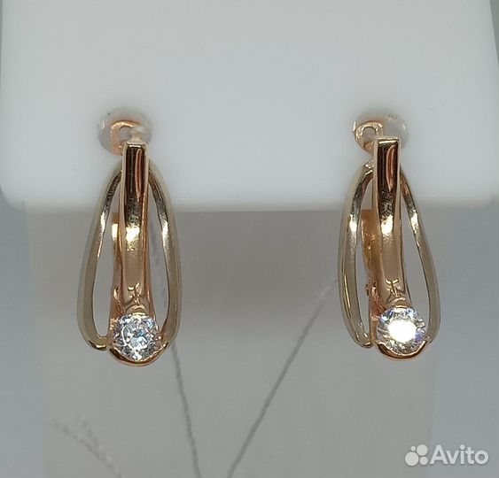 Золотые серьги с фианитом