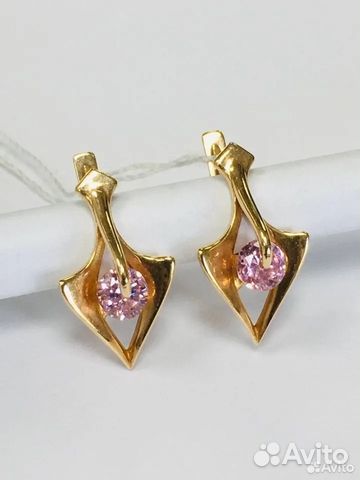 Золотые серьги с фианитом