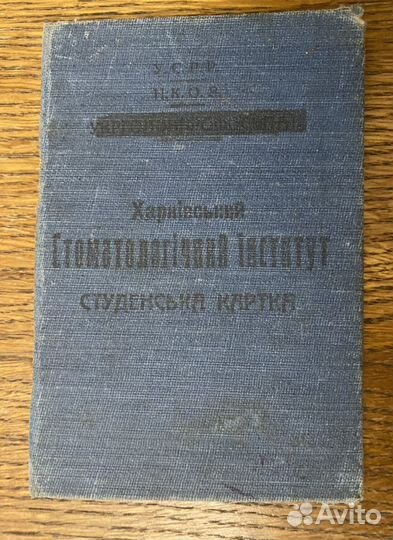 Студен. билет Харьковский стоматолог ин-т 1936год