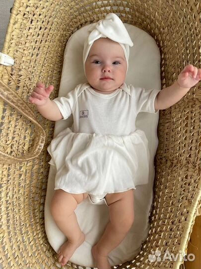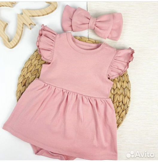 Комплект платье боди и повязка для новорожденных