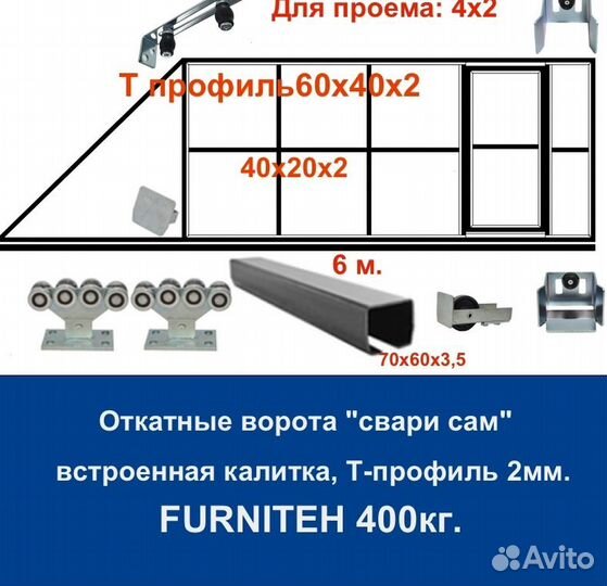Откатные ворота 4х2 +калитка встроенная Т-профиль