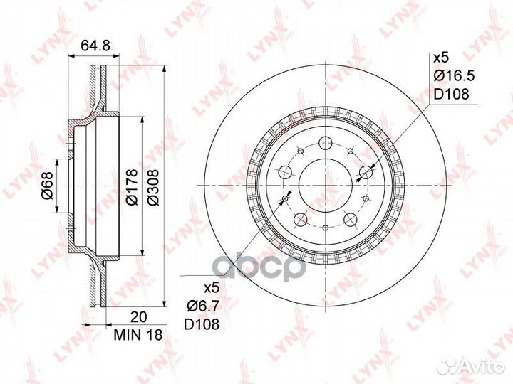 Диск тормозной (308x20) зад ;Volvo XC90 I