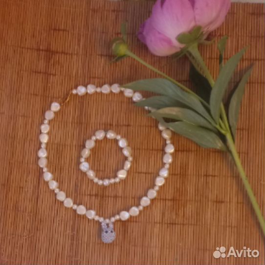 Жемчужное ожерелье и браслет с амигуруми