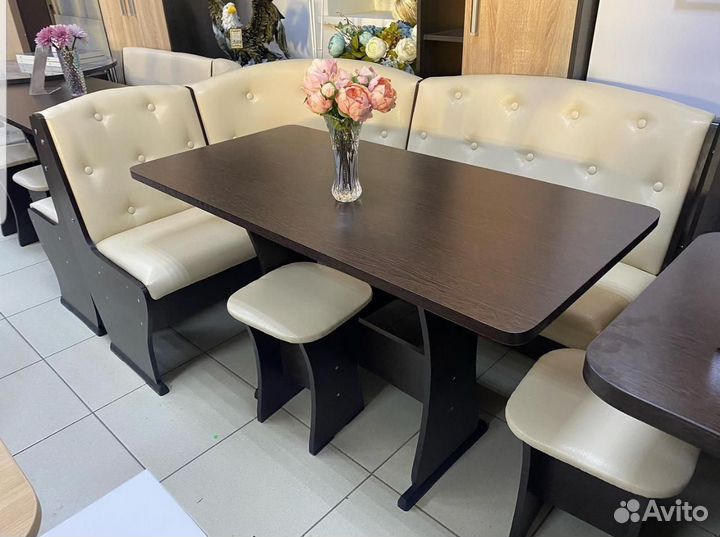 Кухонный мягкий уголок с обеденным столом
