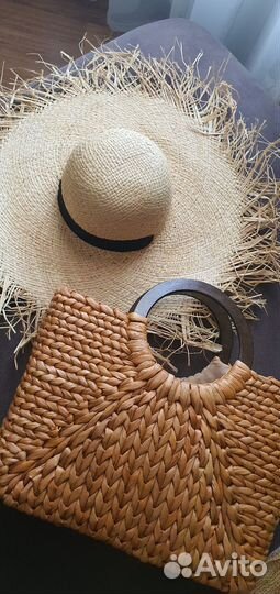 Cумка и шляпа из соломы, натуральная