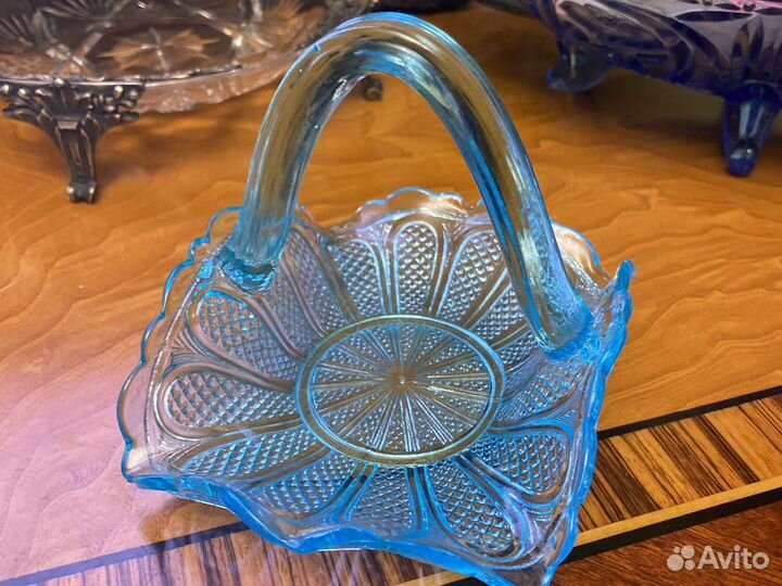 Вазочка и корзинка купоросное стекло цена за 2 шт