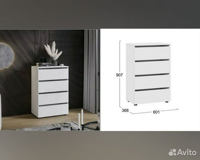 Комод, 4 ящ., белый, 60*91*37 см