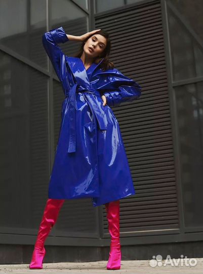 Плащ лаковый синий