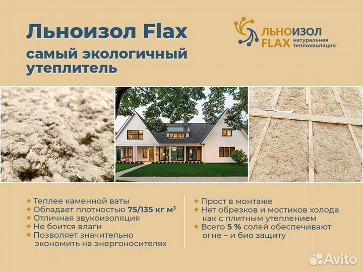 Льняной утеплитель Льноизол Флакс 90 задувной для