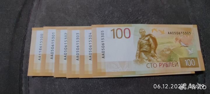 Банкнота 100 рублей 2022 серия аа 777 30000