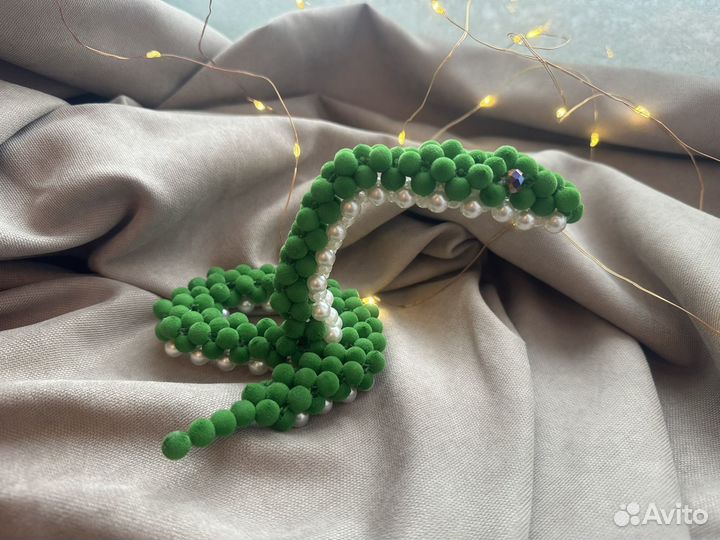 Змея из бархатных бусин символ года