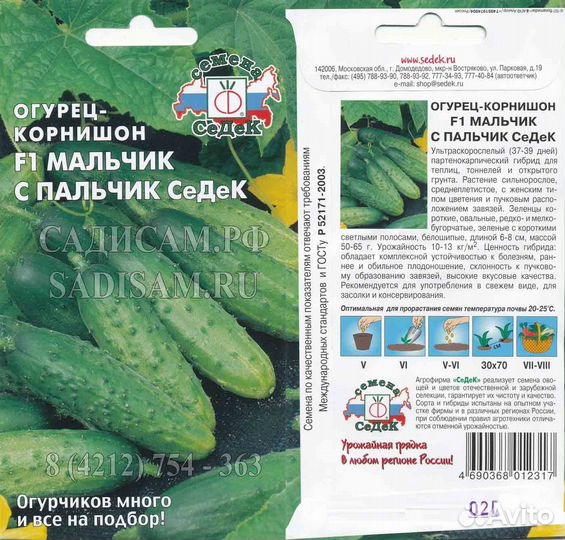 Огурец Мальчик-с-пальчик F1 (Седек) Ц 0,2г/ультр.ск.сп,37-39д,парте,6-8см,засол