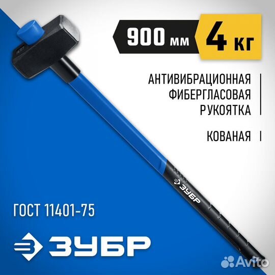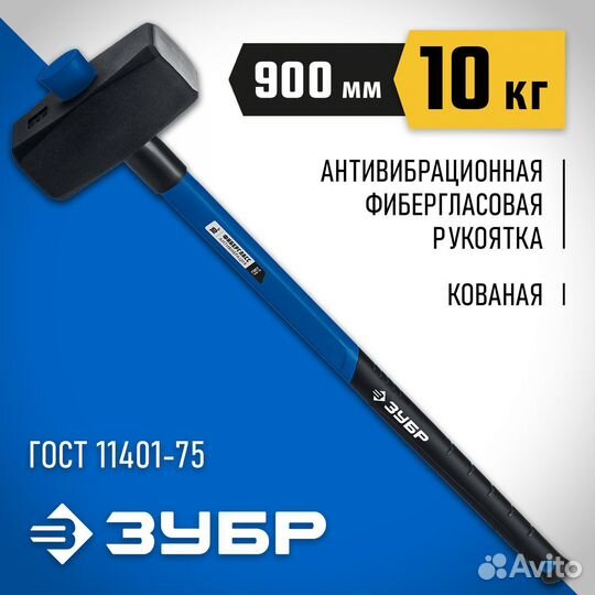 Зубр 10 кг, 900 мм, кувалда с фиберглассовой удлин