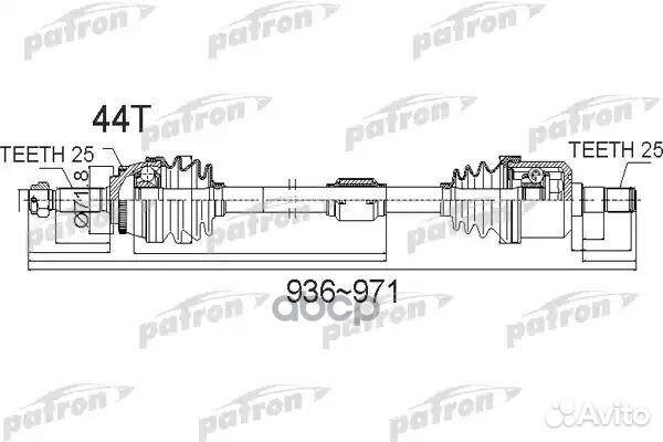Полуось передний мост справа 25X936X71,8X25