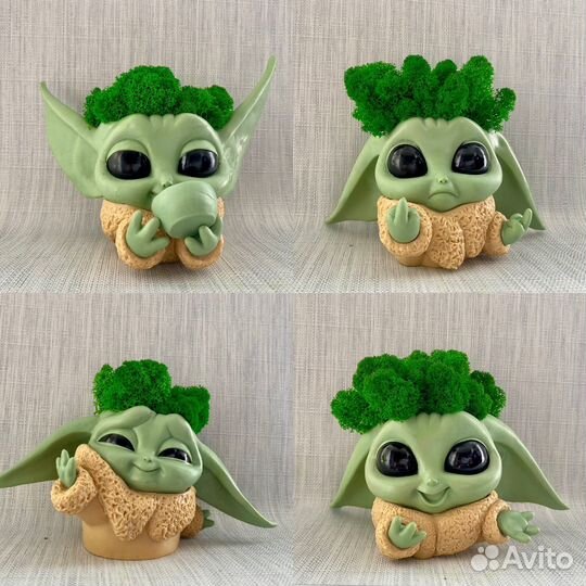 Кашпо Малыш Йода с натуральным мхом