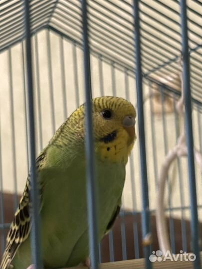 Волнистый попугай с клеткой