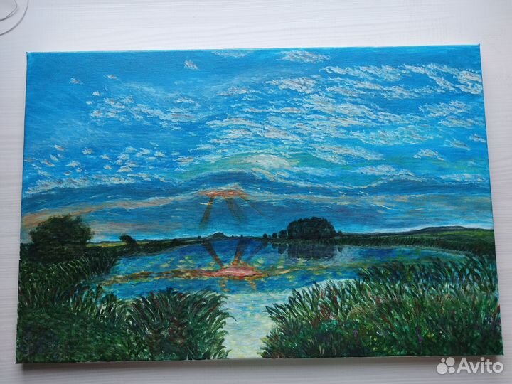 Масляная живопись на холсте Вечерний закат,40/60