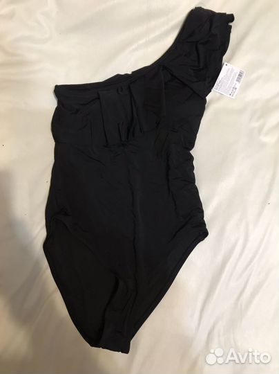 Слитный купальник на одно плечо черный
