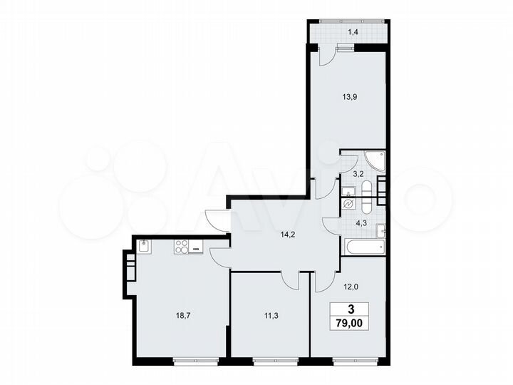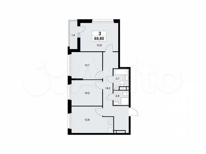 3-к. квартира, 69,8 м², 7/9 эт.
