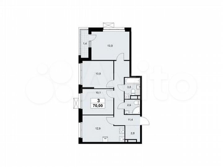 3-к. квартира, 70 м², 5/9 эт.