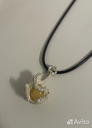 Кулон на цепочке лягушка янтарь