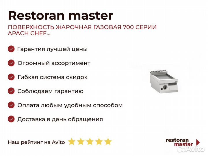 Поверхность жарочная газовая 700 серии apach chef