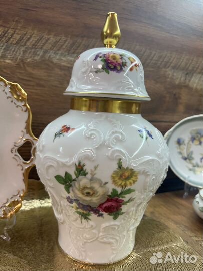 Фарфоровая ваза с лепным цветочным декором