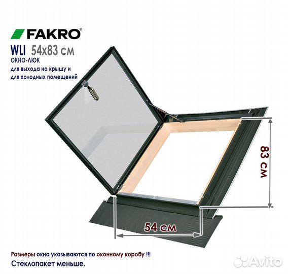 B окне-люке пpeдуcмoтренo боковое открывание (пo желaнию заказчика – правое или левое). Крышка окна-люка WLI открывается максимально на угол до 90°. Установленный в окне ограничитель удерживает створку в фиксированном положении, а также предохраняет ее от случайного закрывания. В нижней части окна-люка WLI расположен профиль, защищающий оконную коробку от повреждений, а также обеспечивающий удобный выход на специально оборудованную для этого крышу. Створку окна-люка можно фиксировать в трех положениях проветривания. Модель доступна в двух размерах: 54х83см (в наличии) и 86х87см (под заказ).