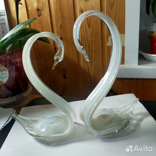 Пара лебедей из белого стекла