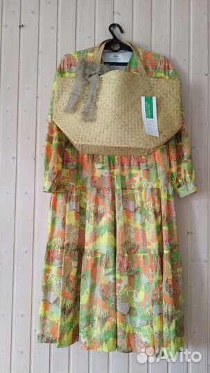 Платье бохо хлопок разм50, сумка соломка пляж