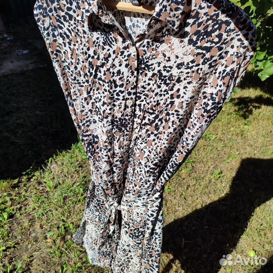 Летнее платье 48размера в отличном состоянии. Пояс утягивается. Платье с карманами. Длина по спинке - 94 см, обхват талии - 100см, обхват груди - 102см.
