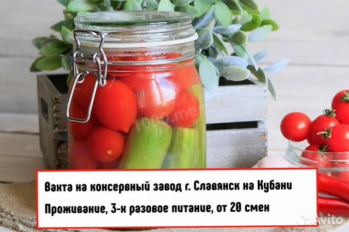 Фасовщик Вахта консервный завод Краснодарский край