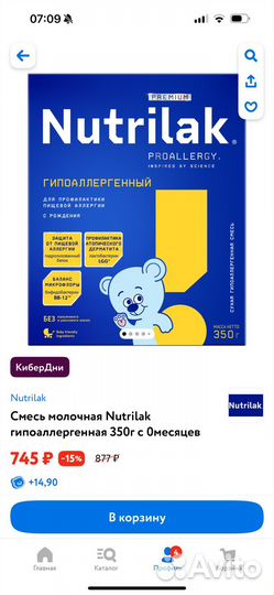Nutrilak гипоаллергенный 350гр с рождения