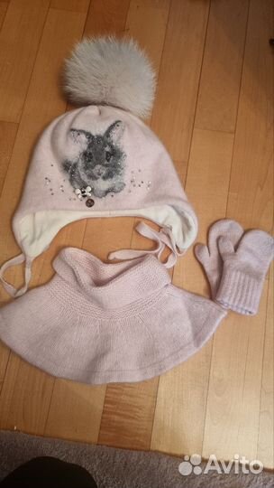 Шапка для девочки 50-52 ангора и шерсть