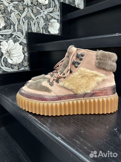 10 000 ₽Ботинки voile blancheБотинки voile blancheБотинки новые, лежат без дела овчина , замша 38 размер, цвет пыльная Роза, внутри без меха