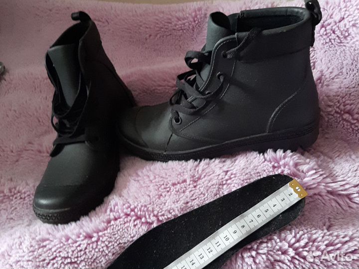 700 ₽Сапоги резиновые с подкладкой 38рСапоги резиновые с подкладкой 38рОбувала 3 раза. Очень стильные удобные, непромокаемые. На левом сапоги нет бигунка. Можно сделать за 100р (я не заморачивалась) на 37,5 будет идеально. Внутри качественная теплая подкладка, с ней не нужно дополнительно одевать носки.