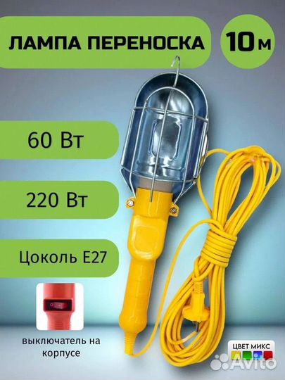 10 метров Светильник лампа переносная